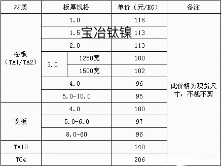 寶雞寶冶鈦鎳今日鈦絲鈦板鈦棒價(jià)格